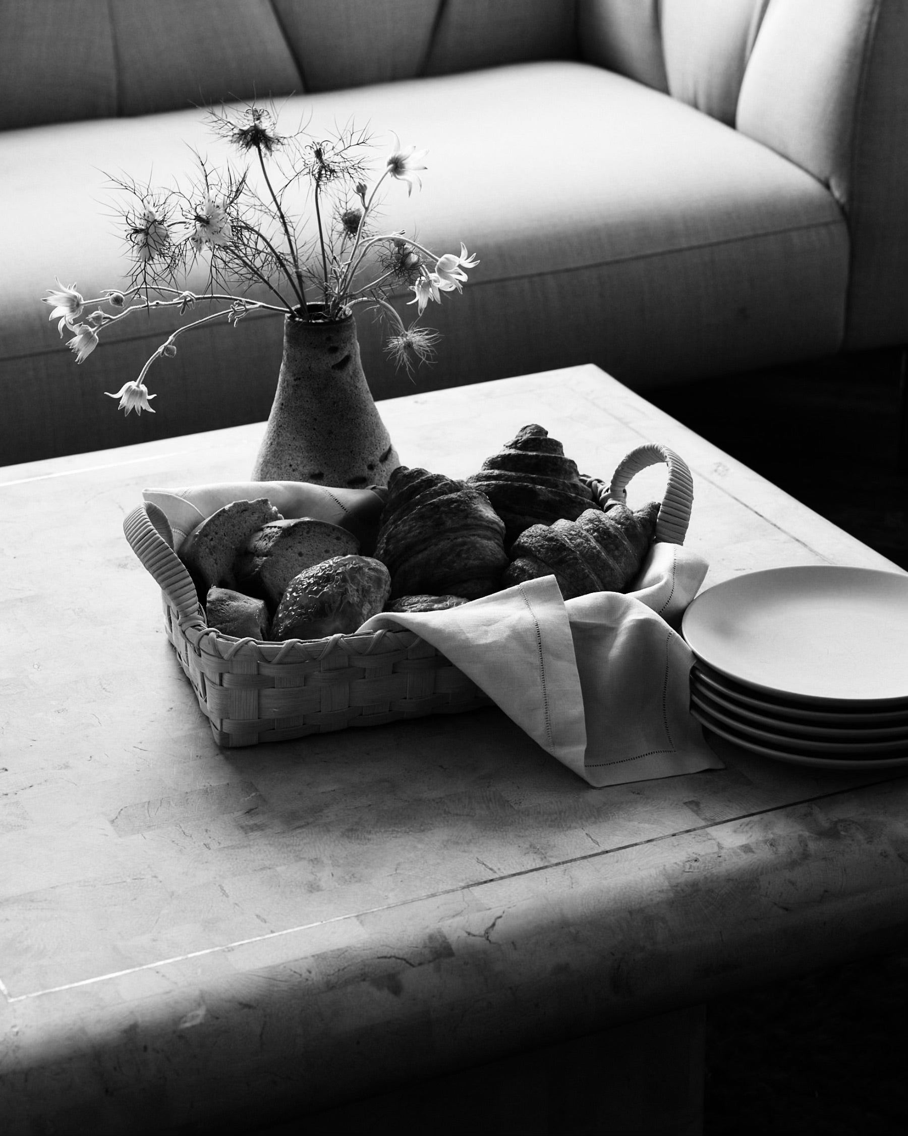 Intricately handwoven with durable rattan fibers, the Folk Fleur Breakfast Tray is a distinct style of basket for long, simple mornings. It is a lyrical yet functional way to display pastries in the breakfast nook. This practical gathering basket was inspired by my mother's baskets in the late 1980s and updated to include rattan-wrapped side handles.