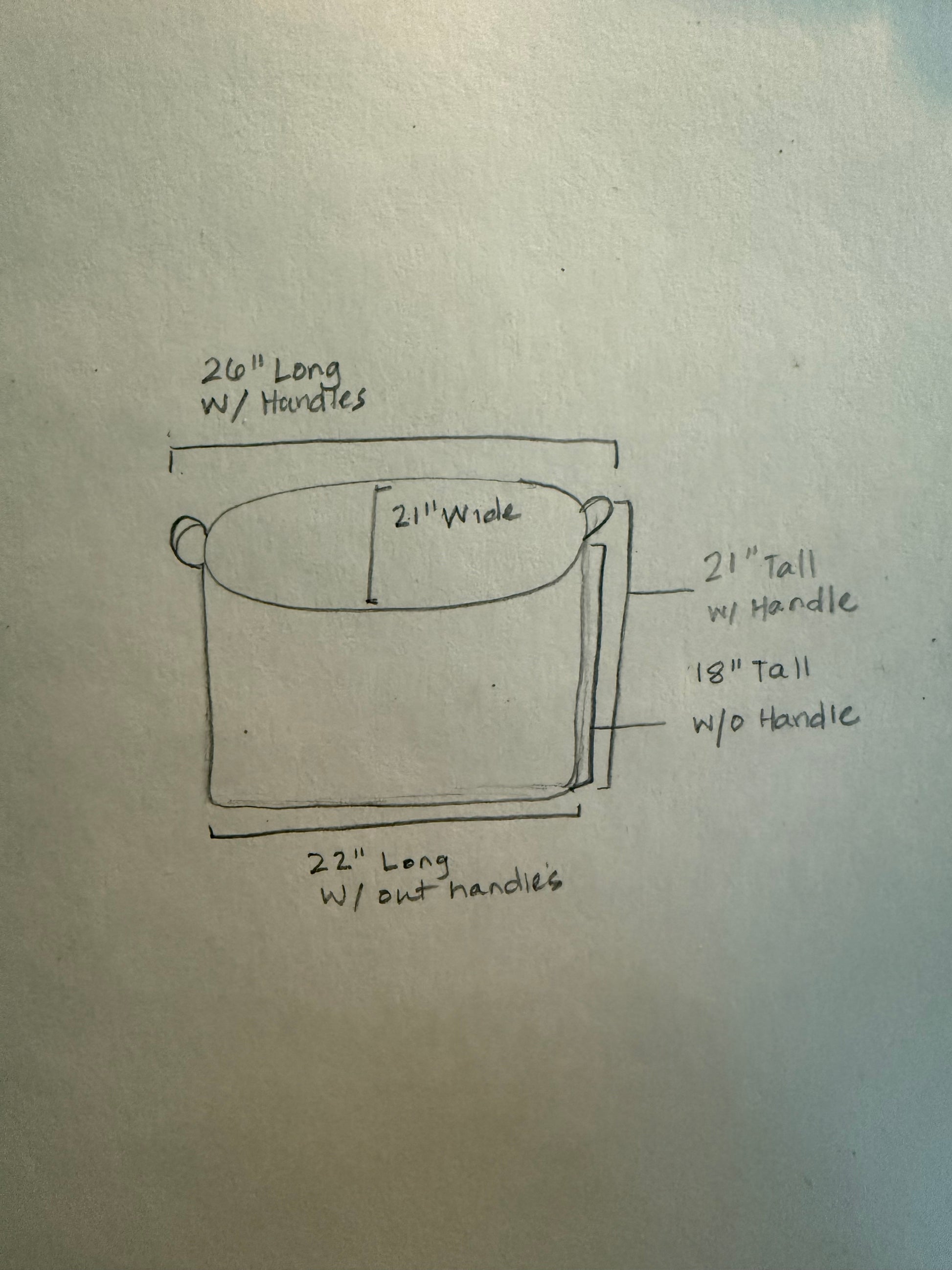 Dimensions: Approximately 22"L x 21" W x 18" T (26" L x 21" T with handles)