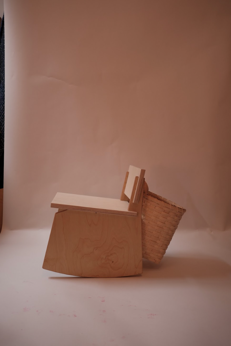 A chair for the child who can't sit still. Now available with a handwoven rucksack basket hitched along for the ride