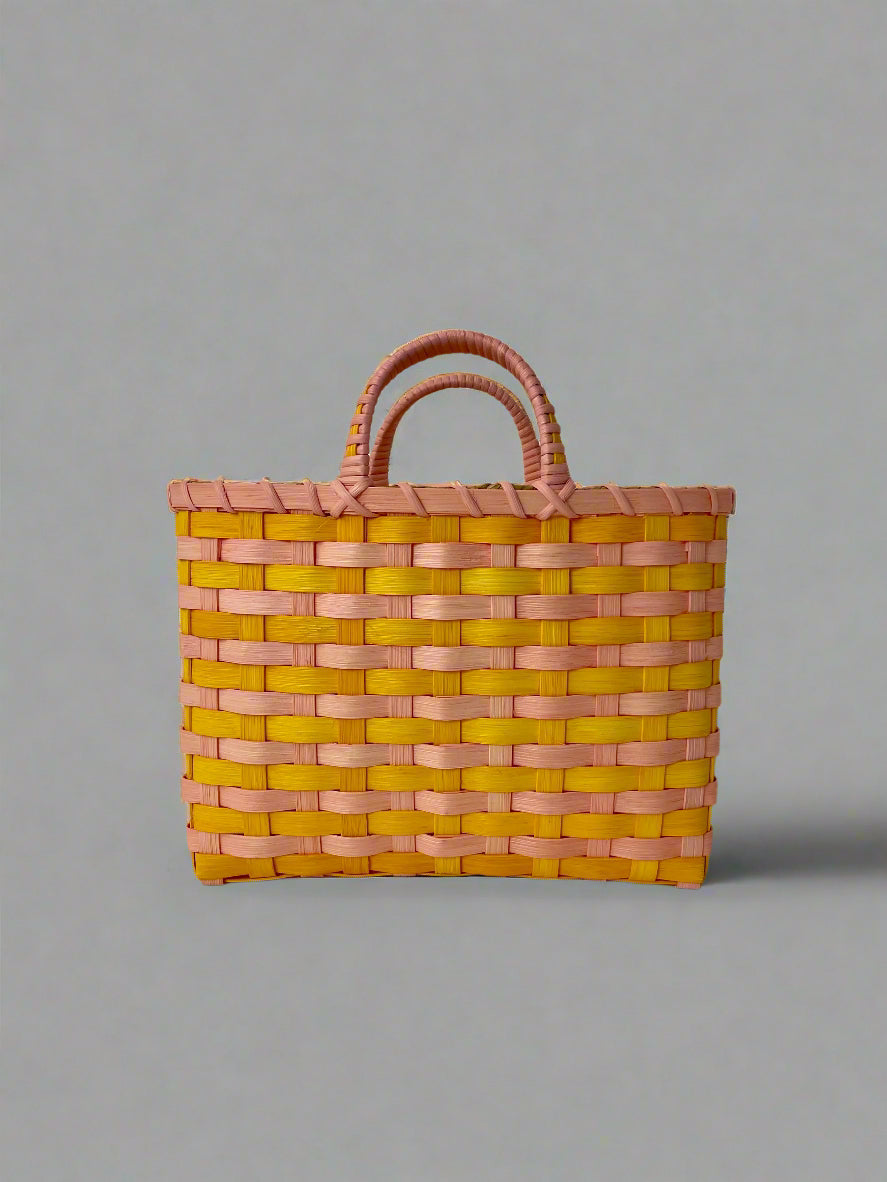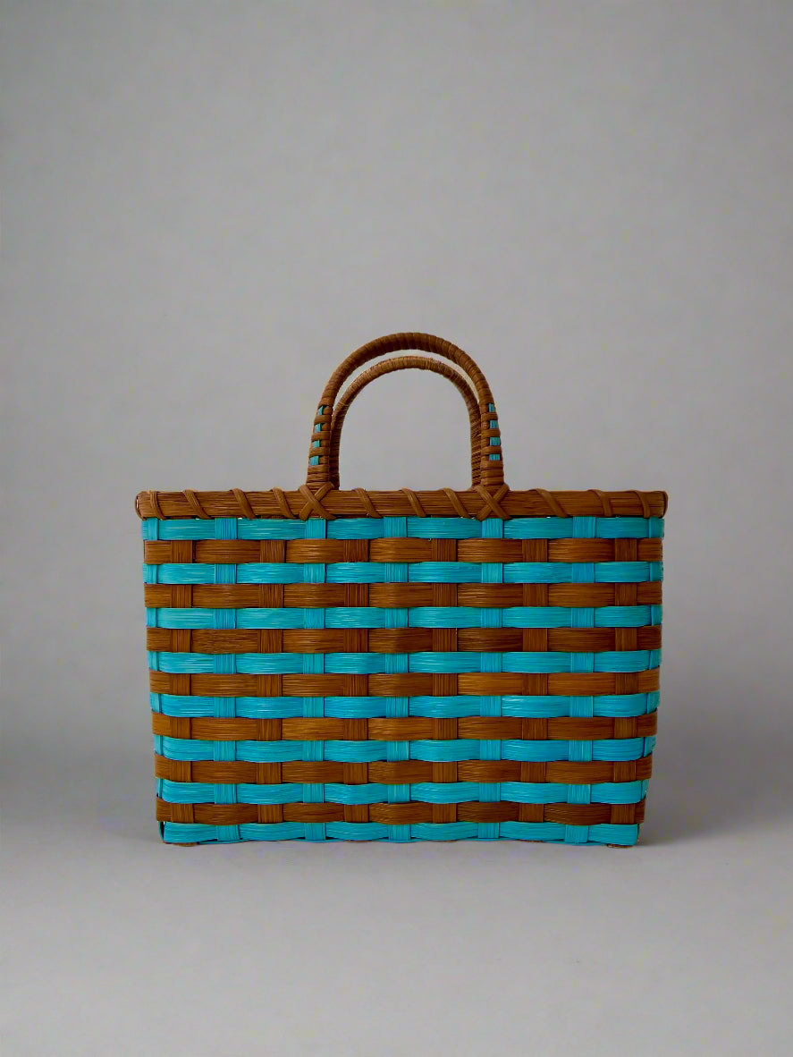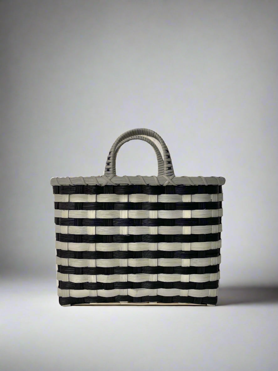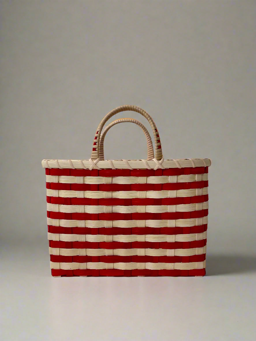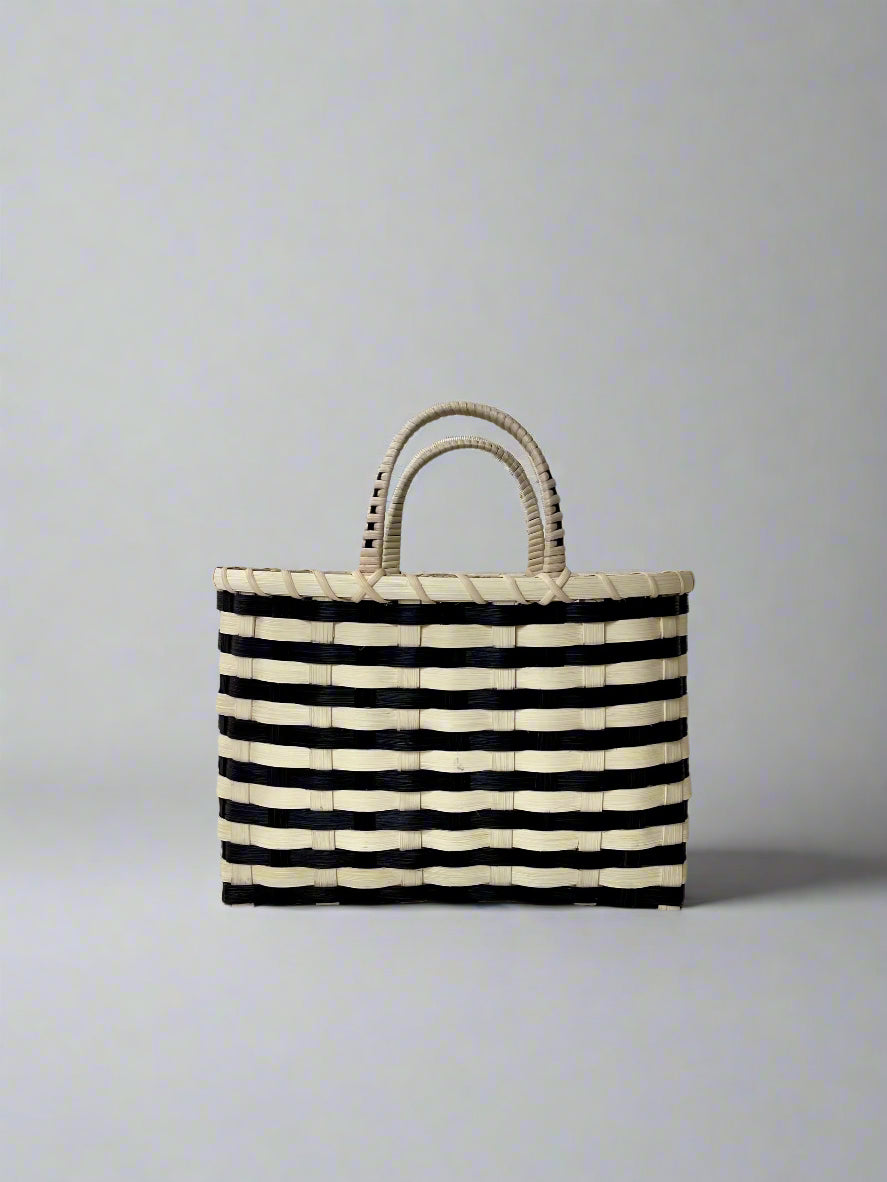 This fun, practical travel companion is a sartorial, sustainable approach to the road trips of life. The perfect size, and oh so lightweight construction make it a handsome everyday carry-all, picnic basket, or carry-on for jet-setting. The closed bottom and wrapped side handles make the Retro-Travel Tote an easy choice for a gift or an elevated home storage item when not in use.