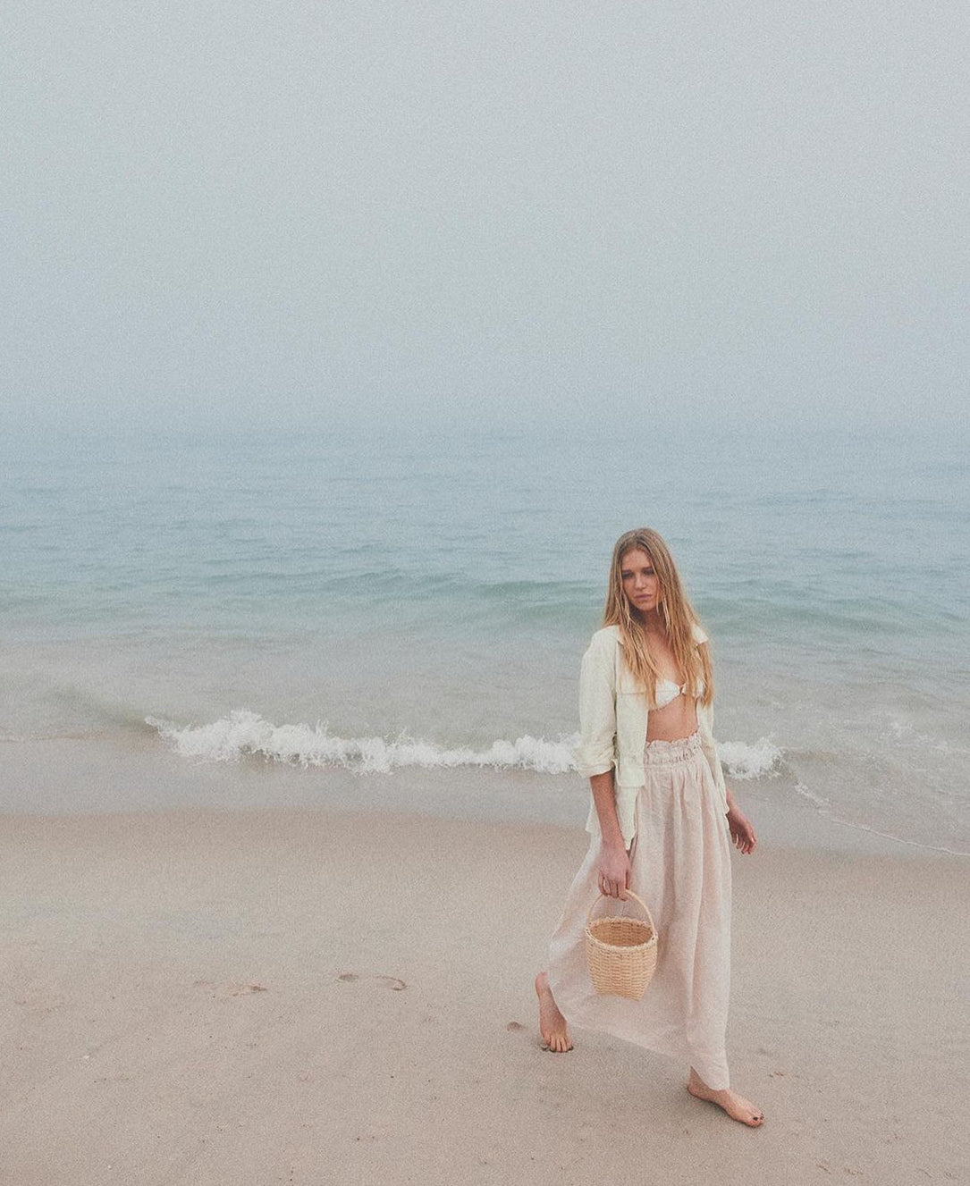 The Underwater Hand Basket is a lovely sartorial choice for the home. This handwoven rattan vessel is a beautiful gift, sweet easter basket or lovely accessory on a summer table. It offers an eloquent shape for gathering berries and displaying florals at a garden brunch. The natural beige is the perfect neutral for any outfit or home decor.